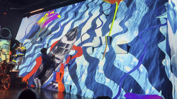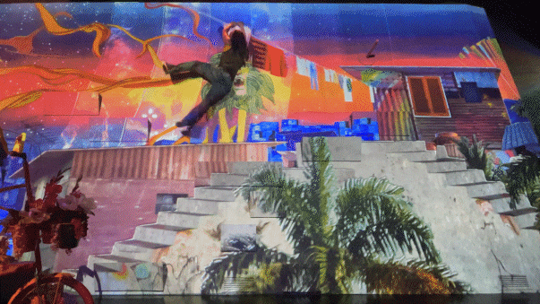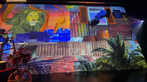 For the new Bob Marley Hope Road show in Las Vegas, Luke Halls Studio produced immersive content across a series of rooms celebrating the life and work of the legendary artist. For one of these rooms a performer interacts with a gigantic wall of projected animation in which he somersaults through windows, sails across seas and rides a cloud up to space. I composited and animated this scene along with the team including Salvador Maldonado who animated the swimming lion.